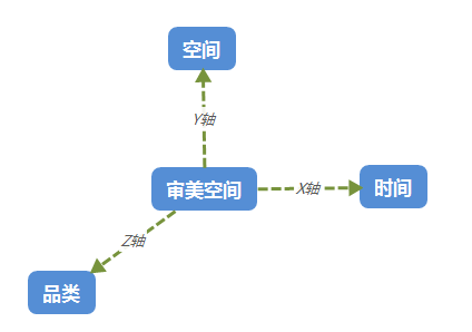审美空间构成了一个人作为消费者的全部审美,或者更直白的来说,就是你作为一个人到底有多少见识。他有三个轴: