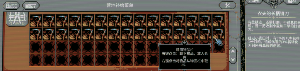 《Loop Hero》在这方面做的是很不错的,数值的分割做得十分稳妥,但也有一些数值爆炸外层投放,比如【伯爵之座】,每件提供1%的吸血,努力搞个几十件,效果就赶超了《魔兽争霸3》的疯狂面具;再比如【农夫的长柄镰刀】,造成的伤害的3%转化成对所有单位的伤害,努力搞个几十件,效果吊打《Dota》的狂战斧和《英雄联盟》的提亚马特。
